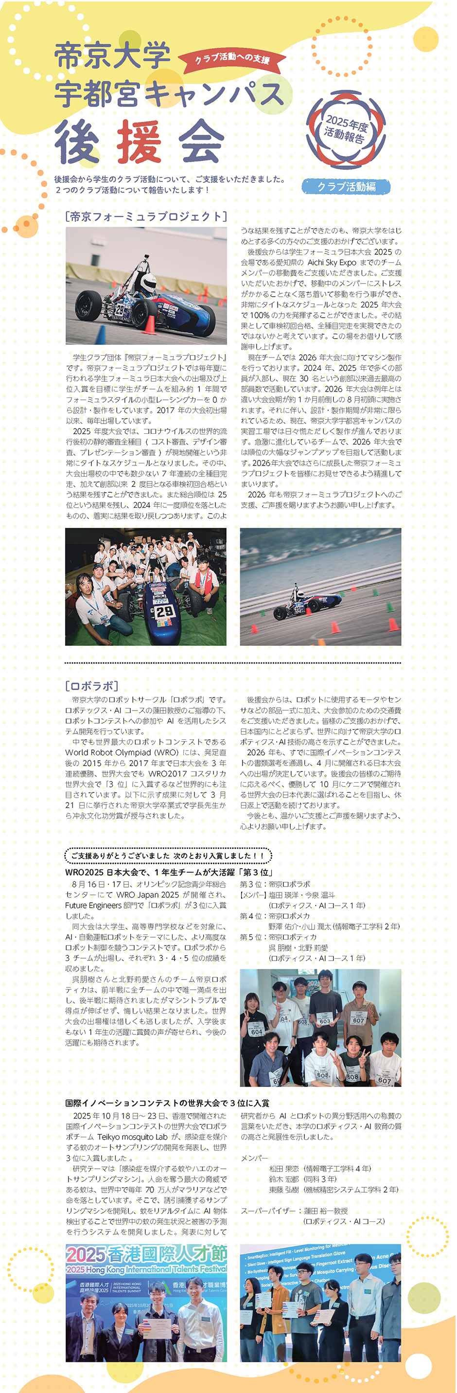 後援会員の皆様からご支援いただき、実施いたしました活動につきましてご報告いたしますので、ご高覧くださいますようお願いいたします。